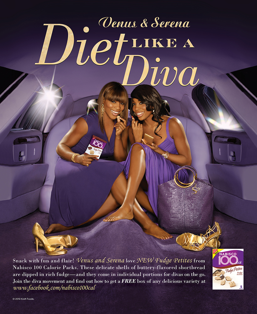 The Diet Like a Diva Sweepstakes Campaign launched a contest for savvy snackers who were asked to submit a video about how they added fun and flair to their sensible snacking routine. Eight winners experienced a glamorous fashion photo shoot with tennis superstars Venus and Serena Williams and UK fashion photographer Frank Herholdt. The finalists were then featured in several Condé Nast publications.